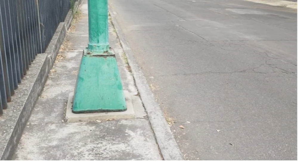 Figura 4: Banqueta mal diseñada debido a que es demasiado estrecha y tiene obstáculos para los peatones.