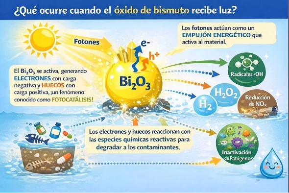 contaminantes del agua; por otro lado, el óxido de bismuto, al absorber luz solar, genera reacciones