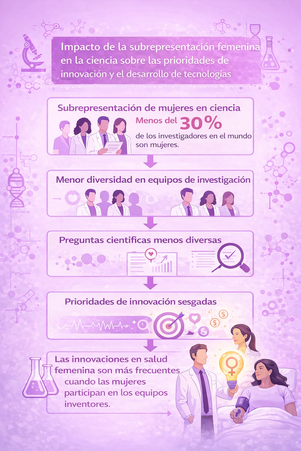 La innovación en salud no siempre es neutral. Históricamente, el cuerpo masculino ha sido utilizado como referencia en la investigación biomédica, lo que ha influido en el diseño de estudios, dispositivos médicos y tecnologías sanitarias. Este artículo analiza evidencia científica que muestra cómo la subrepresentación de mujeres en la investigación, la interpretación inadecuada de datos y la falta de diversidad en los equipos de innovación pueden generar tecnologías menos adecuadas para parte de la población. A partir de ejemplos en farmacovigilancia, dispositivos médicos e inteligencia artificial, se discuten los riesgos de estos sesgos y la importancia de incorporar una perspectiva de género para desarrollar tecnologías de salud más seguras, inclusivas y efectivas.