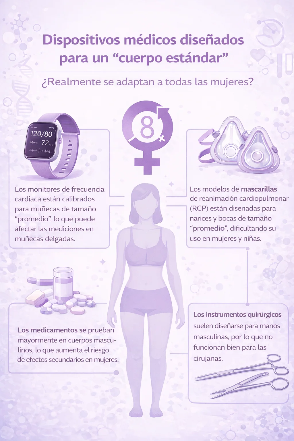 El sesgo de género también puede aparecer en la manera en que se interpretan los datos científicos. Un ejemplo interesante proviene del estudio de los eventos adversos asociados a medicamentos.Dispositivos médicos diseñados para un “cuerpo estándar”